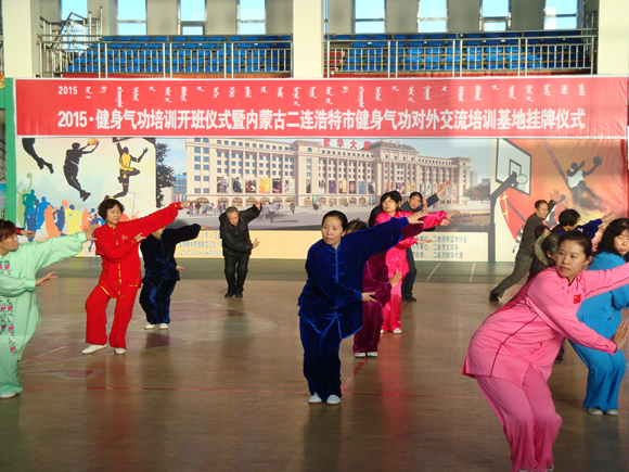 刘宇星带领二连浩特健身气功爱好者表演马王堆导引术