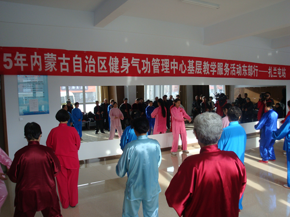 1月18日,内蒙古自治区健身气功管理中心2015基层教学服务活动正式启动,由自治区健身气功管理中心郝占主任带领威尼斯官网教师刘宇星和研究生张颖颖,赴素有“塞外苏杭”之称的扎兰屯市开展为期两天的教学活动,本次活动共吸引了来自全市80多位健身气功指导员及爱好者参加。期间,正值自治区第三届冬令营在扎兰屯市举行,中心组织教师为参加冬令营的青少年进行了健身气功的教学指导。